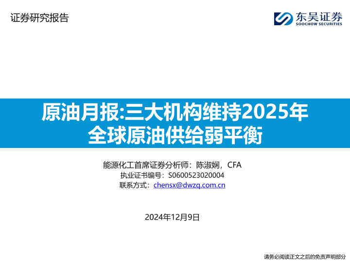 【东吴证券】【20241209】原油月报:三大机构维持2025年全球原油供给弱平衡-42页