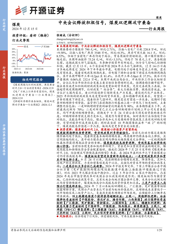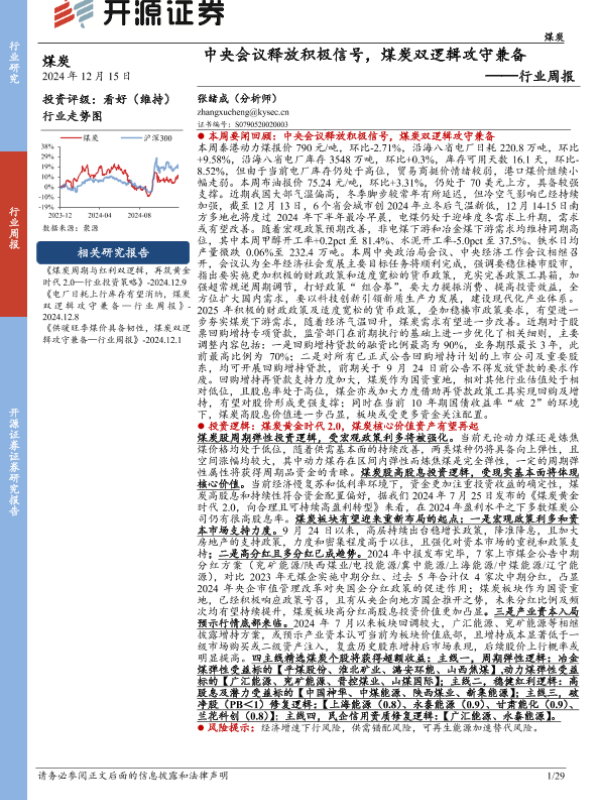 【开源证券】【20241215】煤炭行业周报:中央会议释放积极信号,煤炭双逻辑攻守兼备-29页