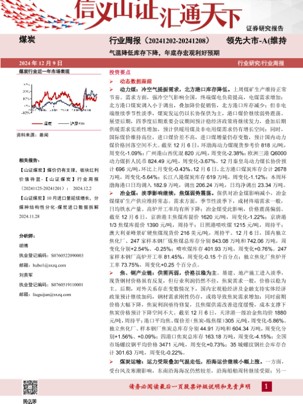 【山西证券】【20241209】煤炭行业周报:气温降低库存下降,年底存宏观利好预期-21页