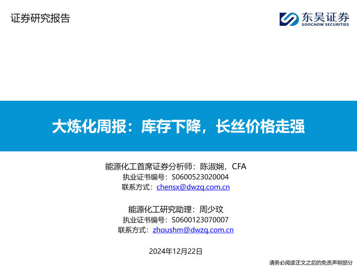 【东吴证券】【20241222】大炼化周报:库存下降,长丝价格走强-34页