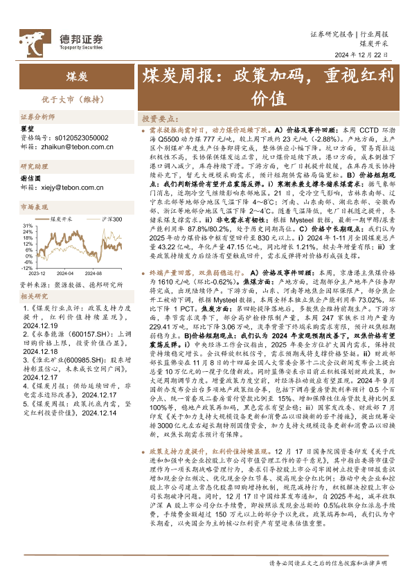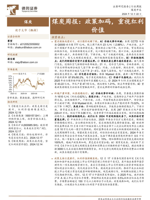 【德邦证券】【20241222】煤炭周报:政策加码,重视红利价值-17页