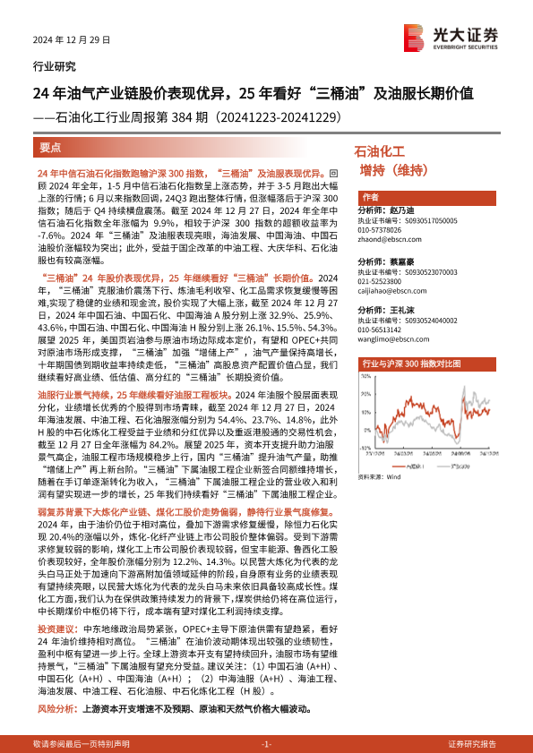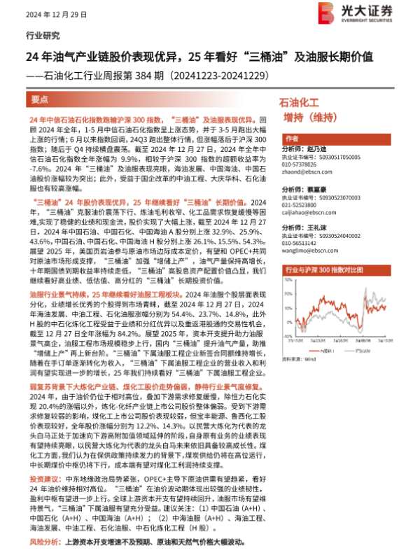 【光大证券】【20241229】20241229-光大证券-石油化工行业周报第384期:24年油气产业链股价表现优异,25年看好“三桶油”及油服长期价值-19页