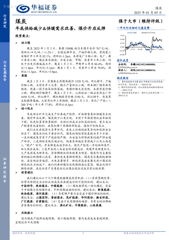 【华福证券】【20250105】煤炭:年底供给减少&供暖需求改善,煤价开启反弹-21页