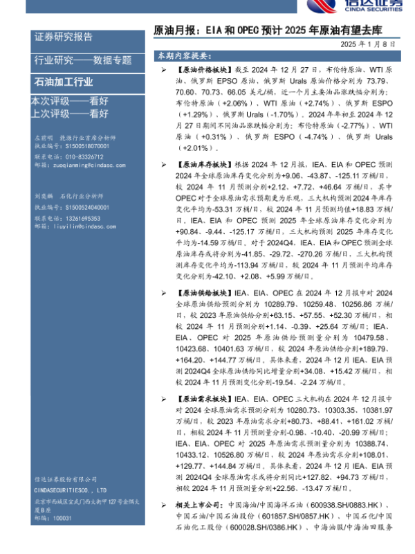 【信达证券】【20250108】原油月报:EIA和OPEC预计2025年原油有望去库-27页