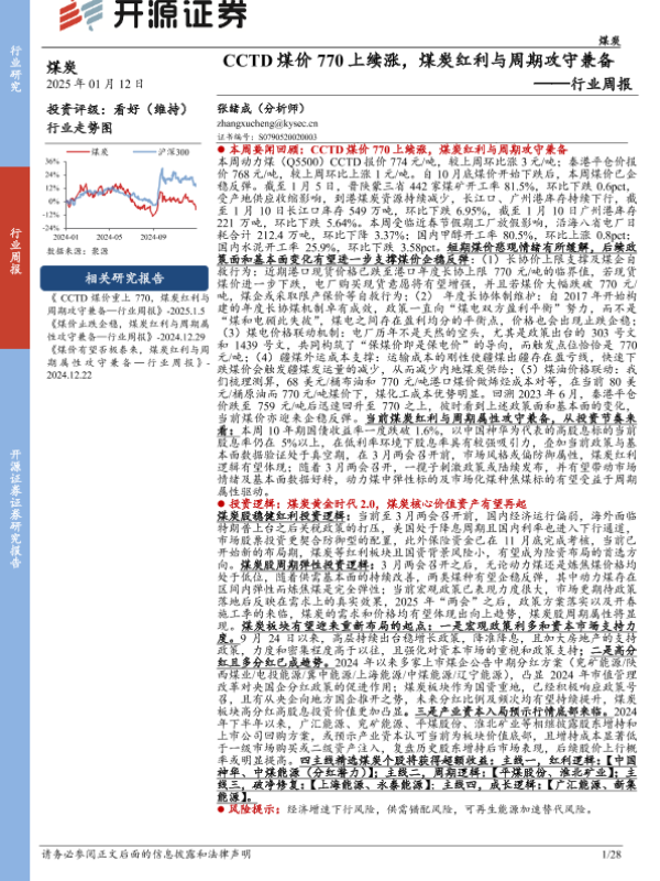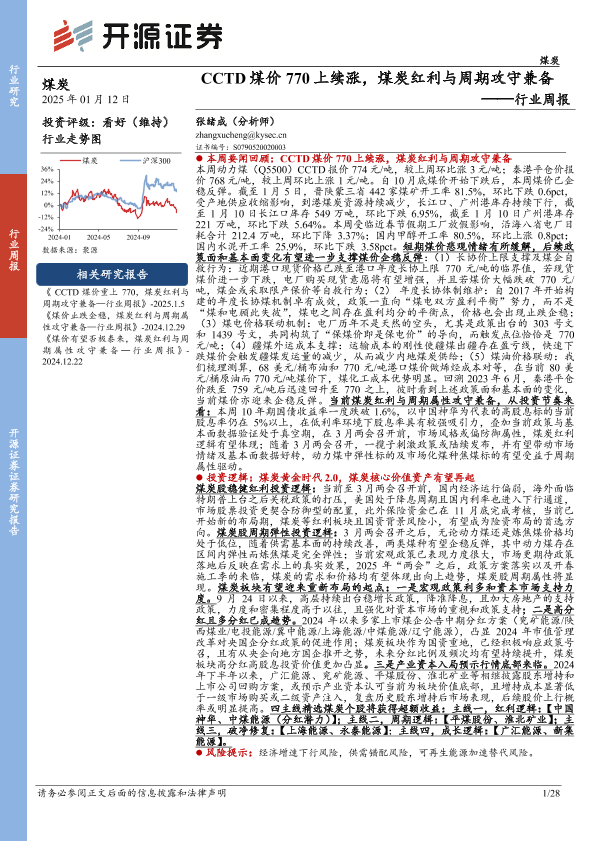 【开源证券】【20250112】CCTD煤价770上续涨,煤炭红利与周期攻守兼备-28页