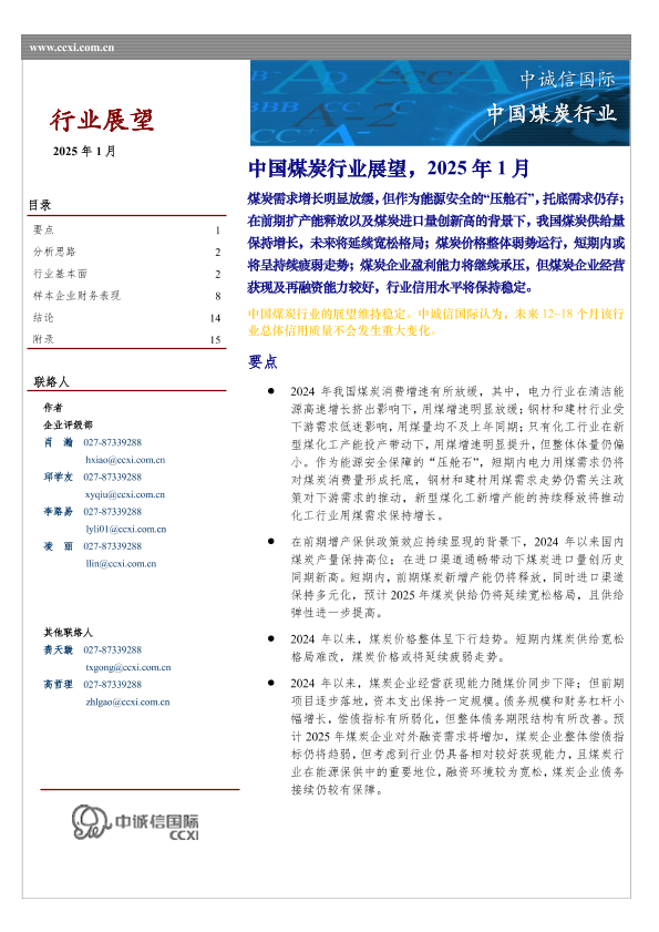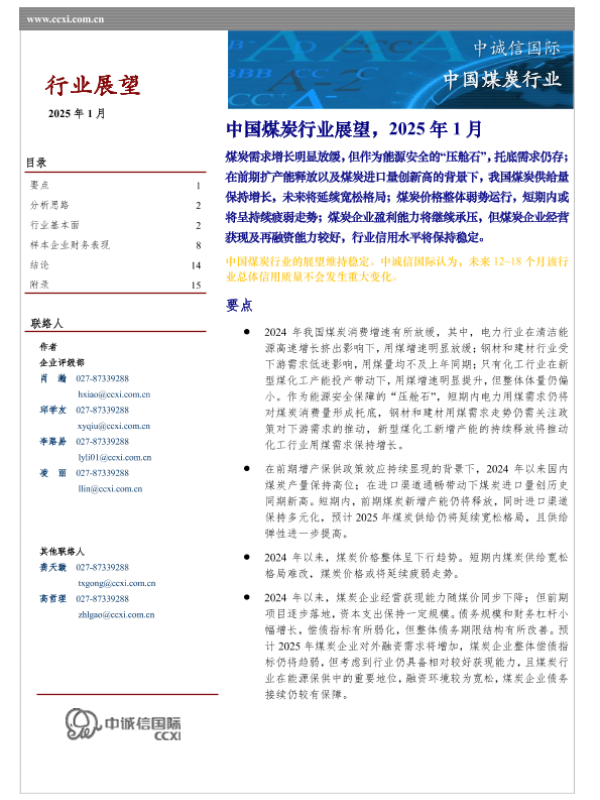 【中诚信国际】【202501】中国煤炭行业展望-19页