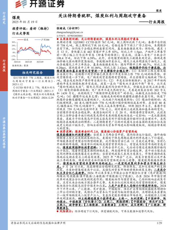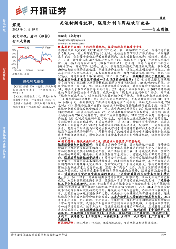 【开源证券】【20250119】煤炭行业周报:关注特朗普就职,煤炭红利与周期攻守兼备-29页