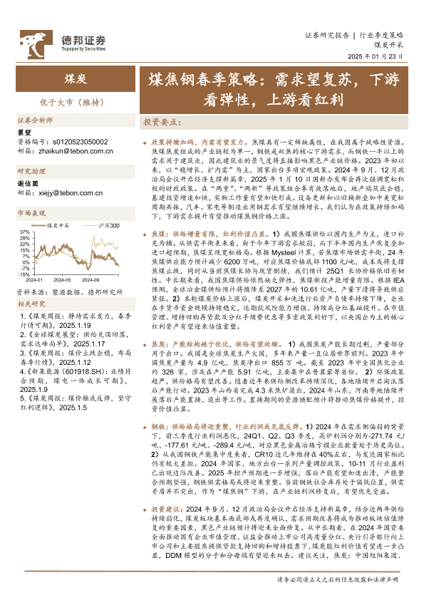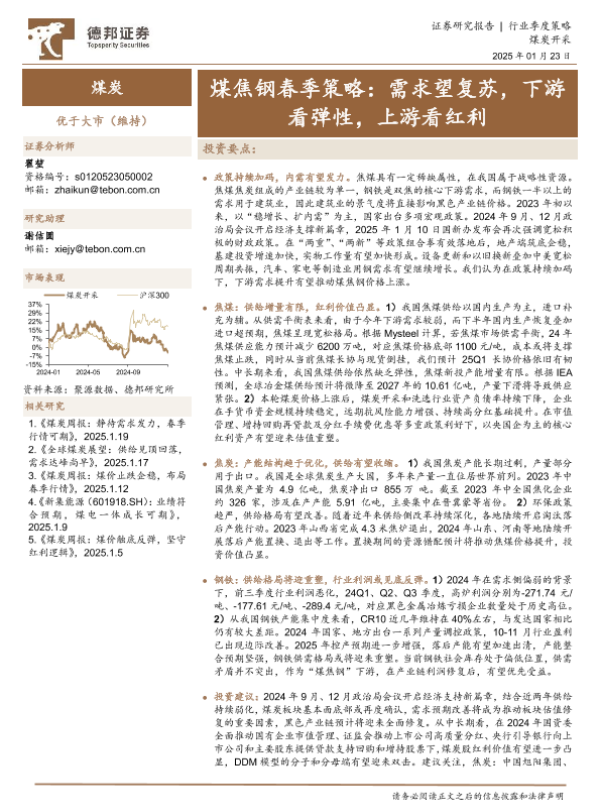 【德邦证券】【20250123】20250123-德邦证券-煤焦钢春季策略:需求望复苏,下游看弹性,上游看红利-29页