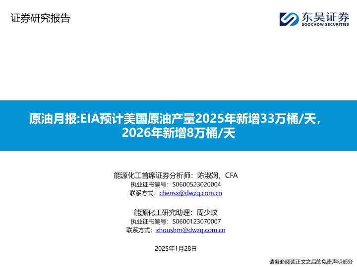 【东吴证券】【20250128】原油月报:EIA预计美国原油产量2025年新增33万桶/天,2026年新增8万桶/天-42页