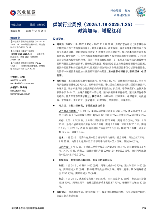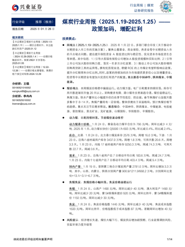 【兴业证券】【20250126】煤炭行业周报:政策加码,增配红利-14页