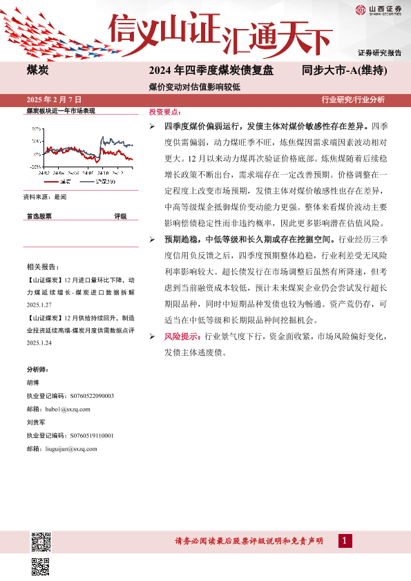 【山西证券】【20250207】2024年四季度煤炭债复盘:煤价变动对估值影响较低-22页