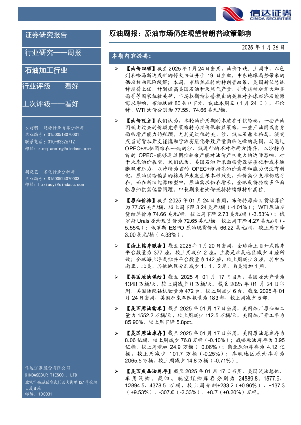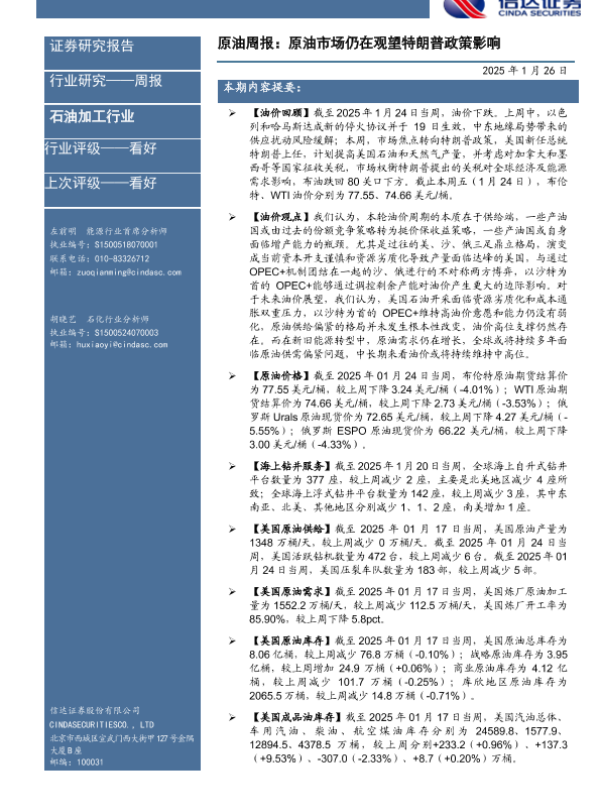 【信达证券】【20250126】原油周报:原油市场仍在观望特朗普政策影响-27页