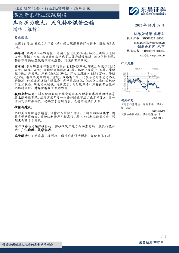 【东吴证券】【20250208】煤炭开采行业跟踪周报:库存压力较大,天气转冷煤价企稳-10页