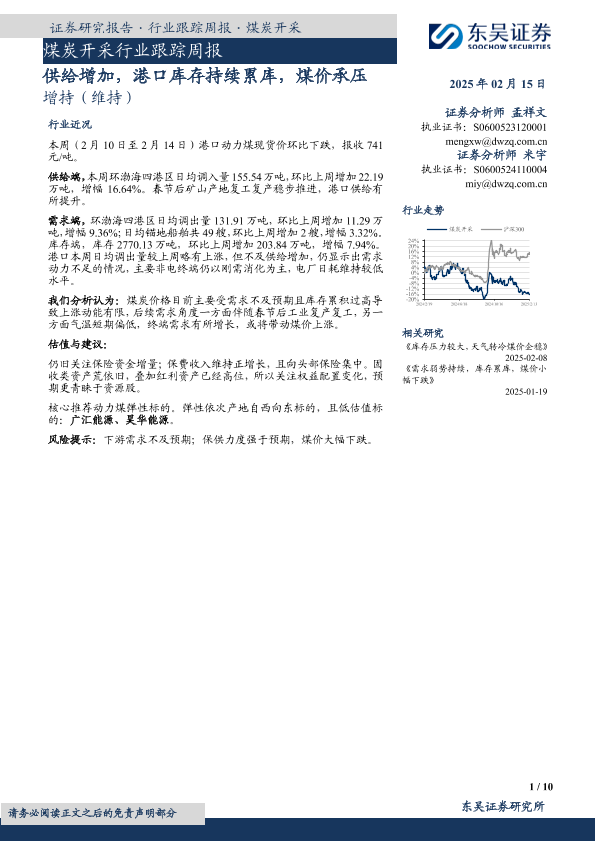 【东吴证券】【20250215】20250215-东吴证券-煤炭开采行业跟踪周报:供给增加,港口库存持续累库,煤价承压-10页