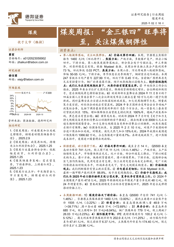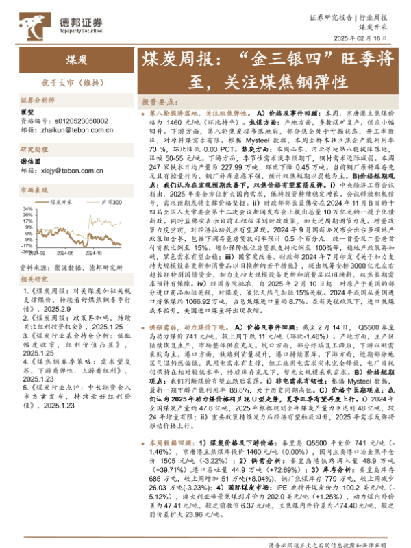 【德邦证券】【20250216】20250216-德邦证券-煤炭周报:“金三银四”旺季将至,关注煤焦钢弹性-16页