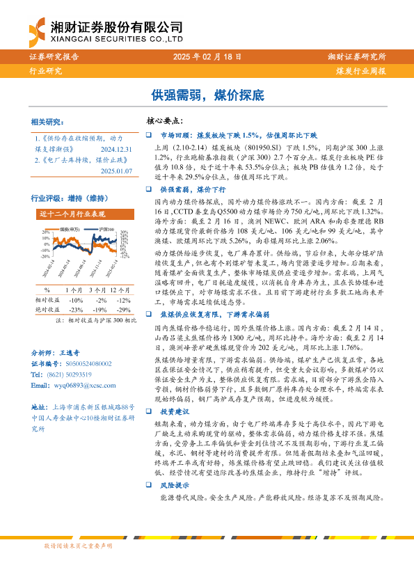 【湘财证券】【20250218】20250218-湘财证券-煤炭行业周报:供强需弱,煤价探底-12页