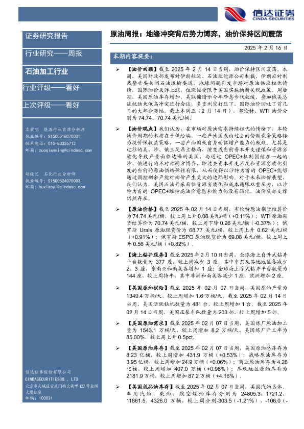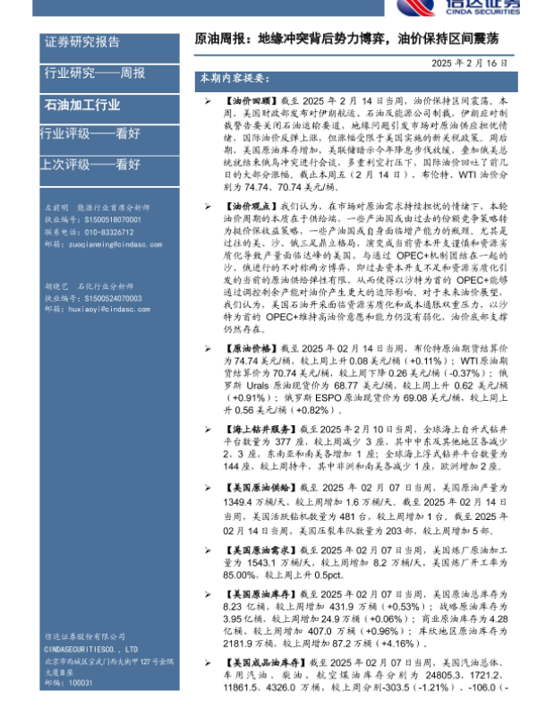 【信达证券】【20250216】原油周报:地缘冲突背后势力博弈,油价保持区间震荡-27页
