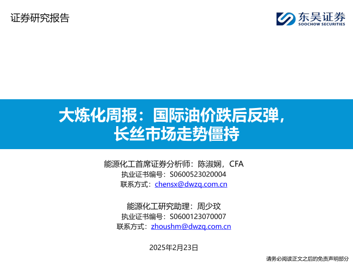 【东吴证券】【20250223】大炼化周报:国际油价跌后反弹,长丝市场走势僵持-34页