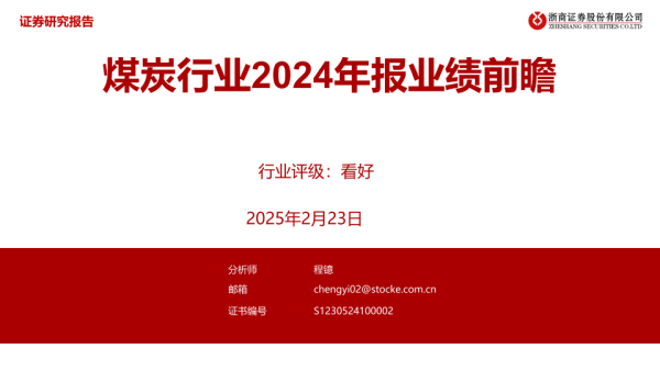 【浙商证券】【20250223】煤炭行业2024年报业绩前瞻-15页