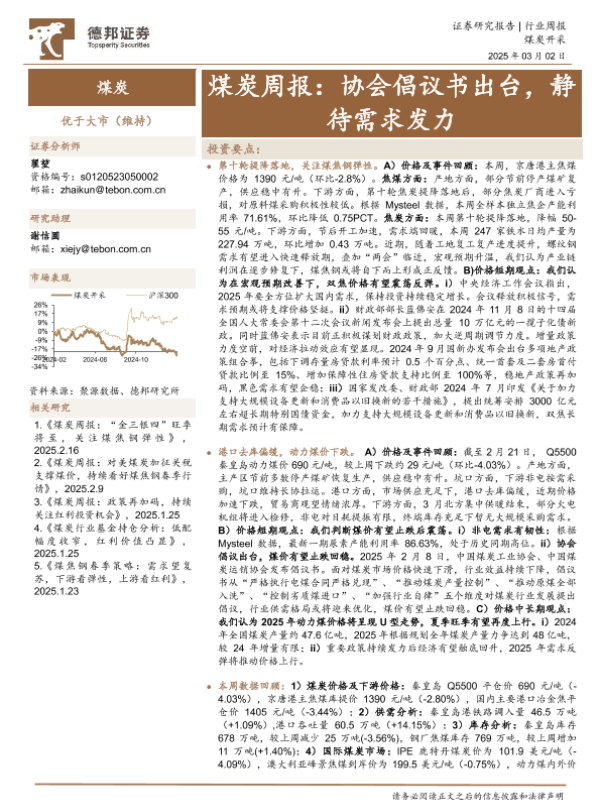 【德邦证券】【20250302】煤炭周报:协会倡议书出台,静待需求发力-16页