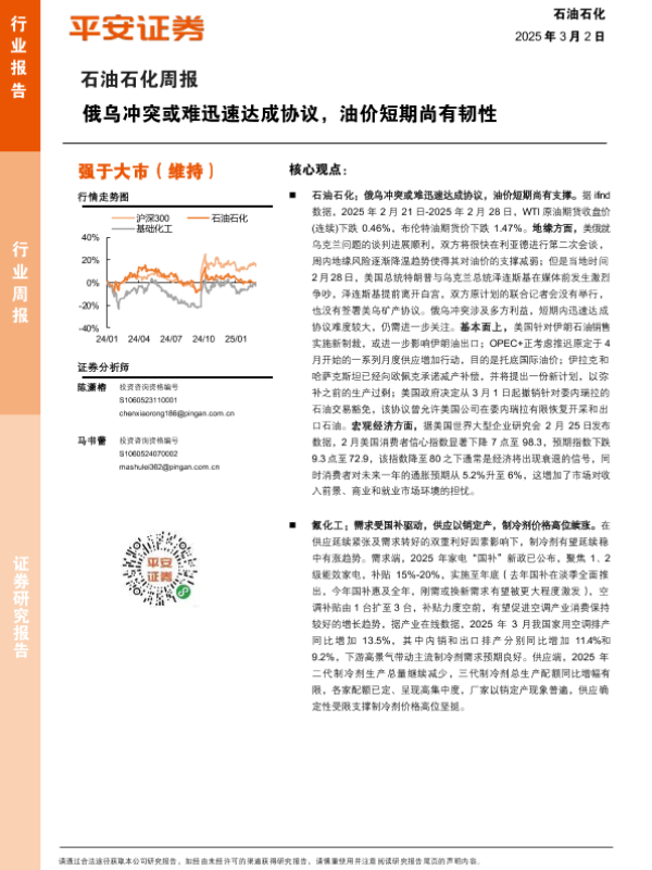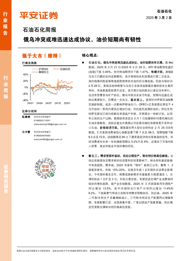 【平安证券】【20250302】石油石化行业周报:俄乌冲突或难迅速达成协议,油价短期尚有韧性-15页