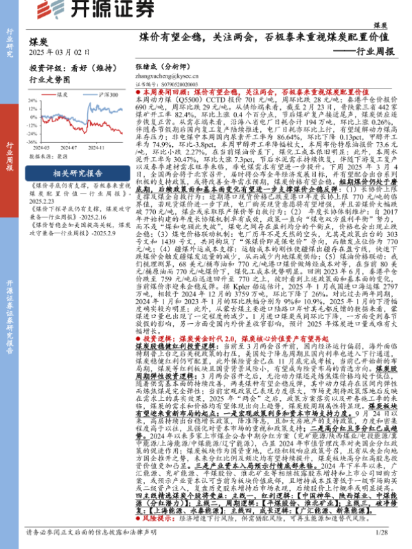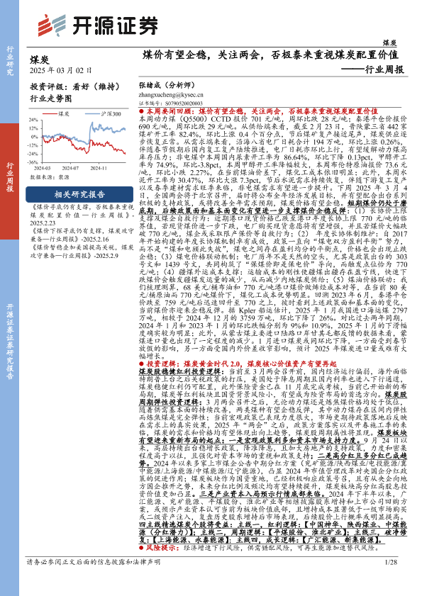 【开源证券】【20250302】煤价有望企稳,关注两会,否极泰来重视煤炭配置价值行业周报-28页