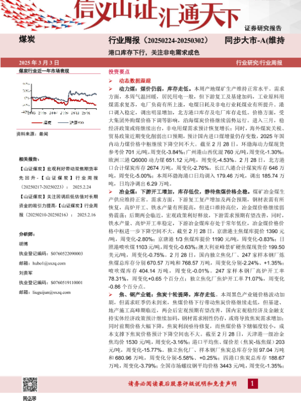 【山西证券】【20250303】煤炭行业周报:港口库存下行,关注非电需求成色-22页