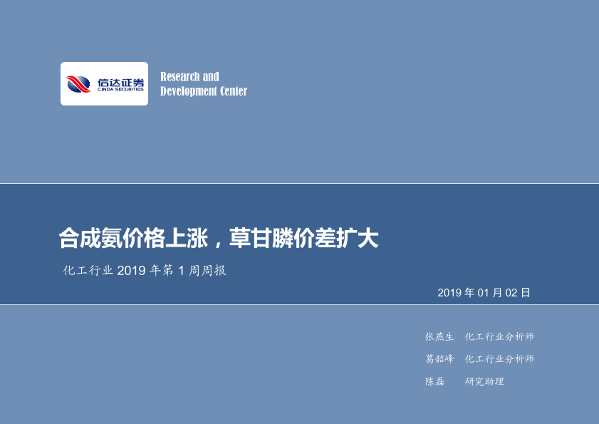 【信达证券】【20190102】化工行业2019年第1周周报:合成氨价格上涨,草甘膦价差扩大-40页