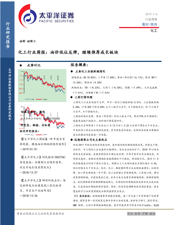 【太平洋证券】【20190106】20190106-太平洋-化工行业周报:油价低位反弹,继续推荐成长板块-38页