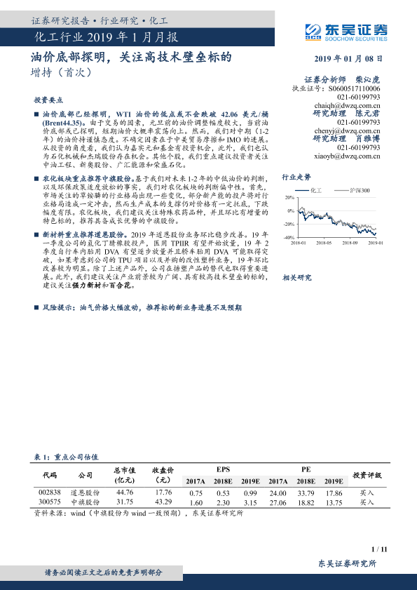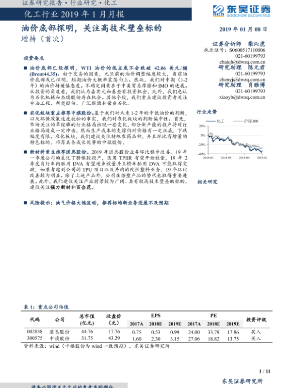 【东吴证券】【20190108】化工行业2019年1月月报:油价底部探明,关注高技术壁垒标的-11页