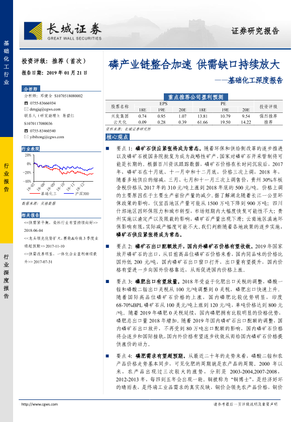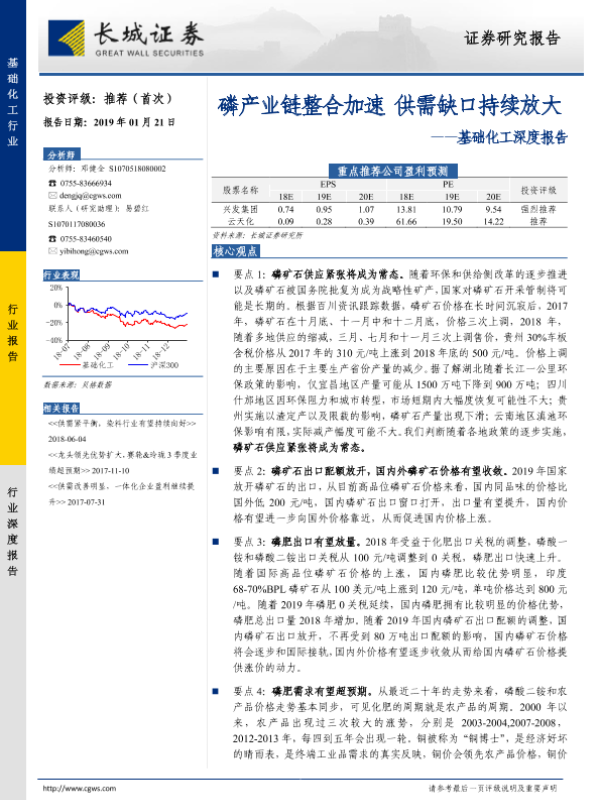 【长城证券】【20190121】基础化工深度报告:磷产业链整合加速 供需缺口持续放大-18页