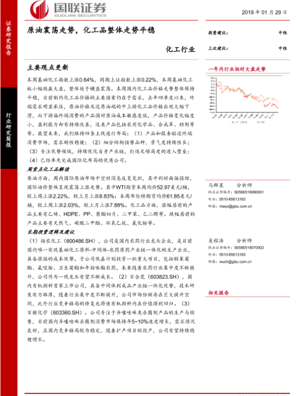 【国联证券】【20190129】20190129-国联证券-化工行业:原油震荡走势,化工品整体走势平稳-17页