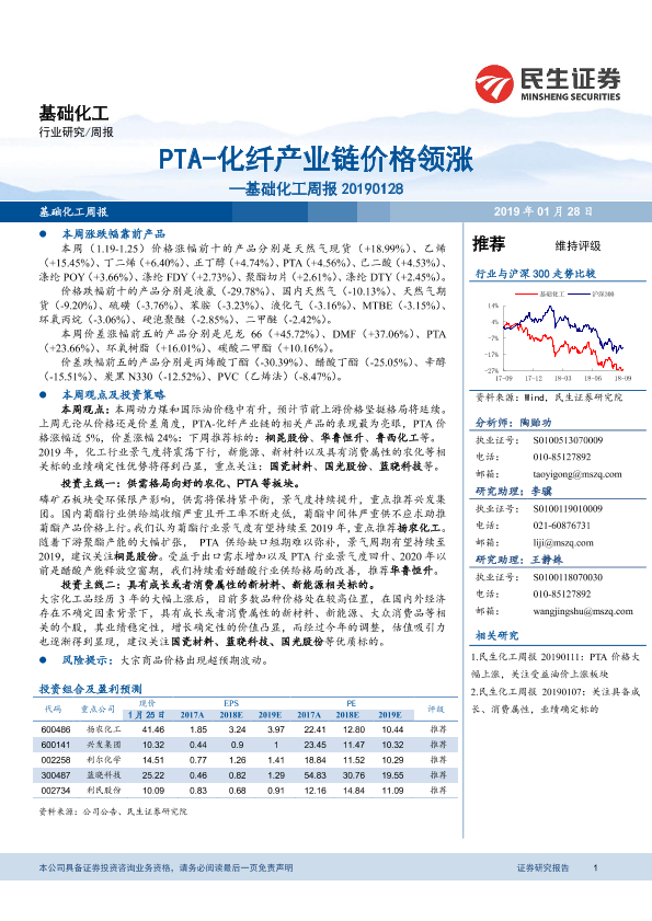 【民生证券】【20190128】基础化工周报:PTA-化纤产业链价格领涨-30页