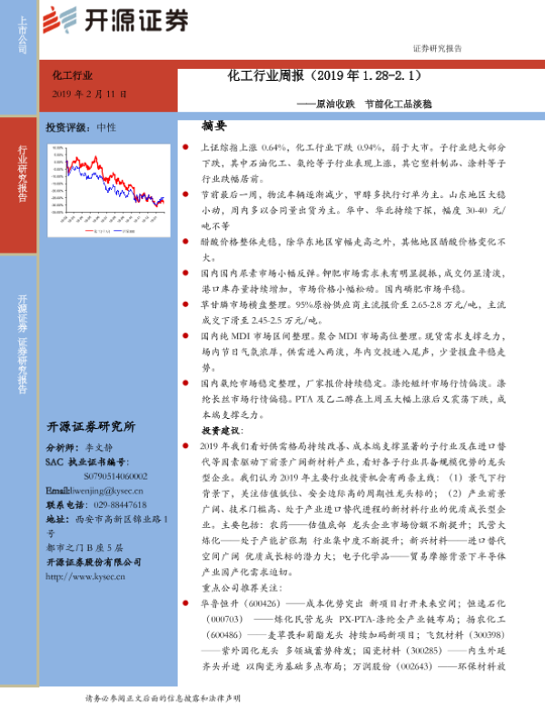 【开源证券】【20190211】20190211-开源证券-化工行业周报:原油收跌 节前化工品淡稳-17页