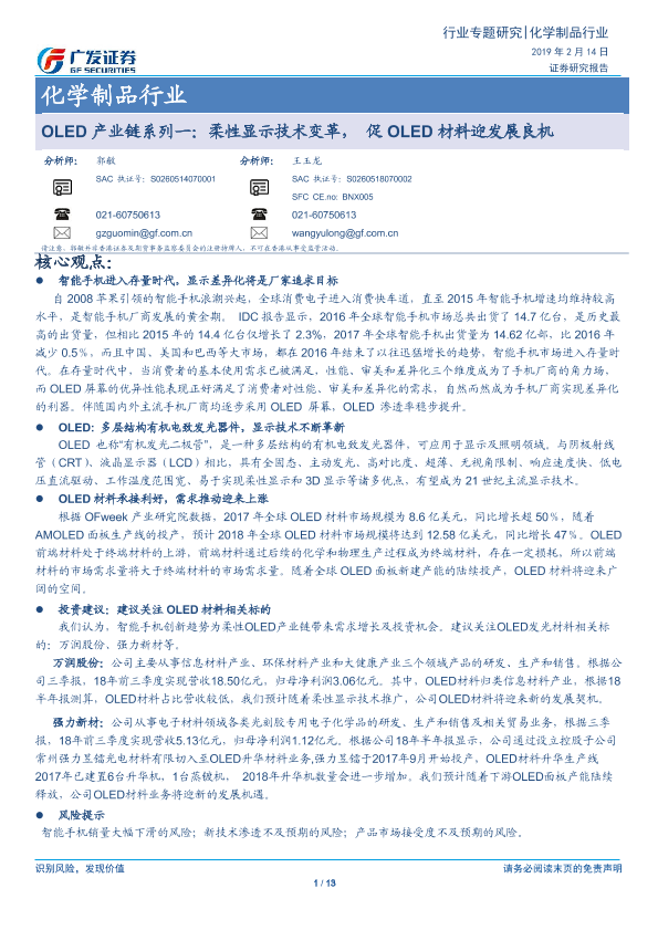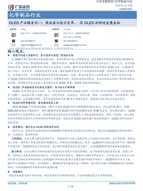 【广发证券】【20190214】OLED产业链系列一:柔性显示技术变革,促OLED材料迎发展良机-13页