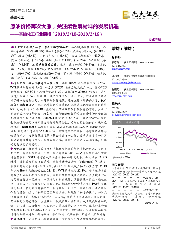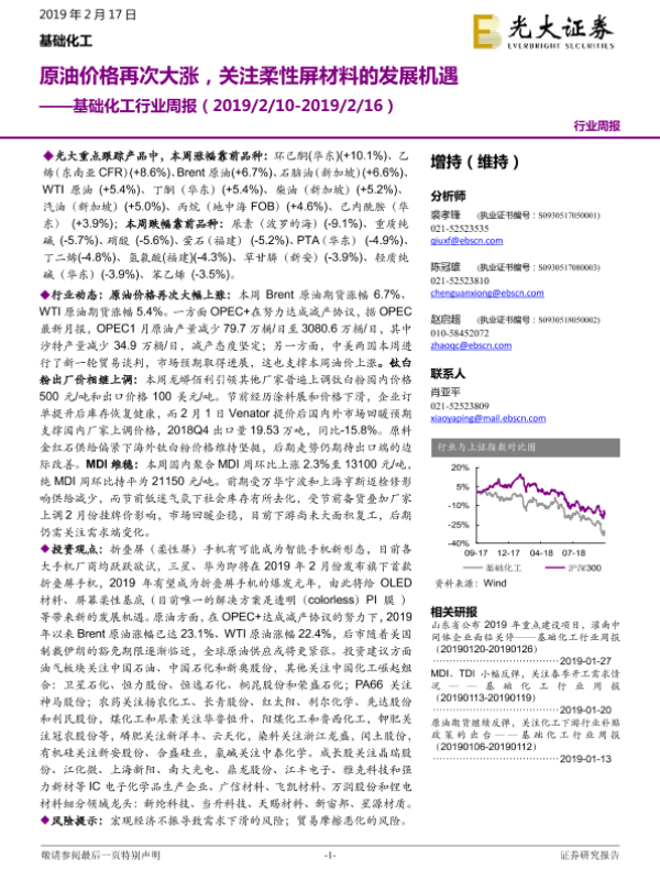 【光大证券】【20190217】基础化工行业周报:原油价格再次大涨,关注柔性屏材料的发展机遇-20页