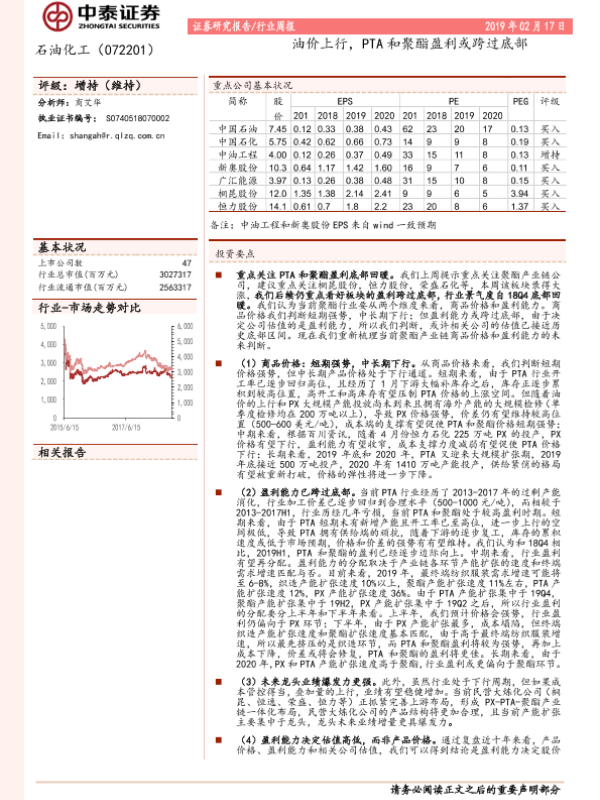 【中泰证券】【20190217】20190217-中泰证券-石油化工行业周报:油价上行,PTA和聚酯盈利或跨过底部-18页