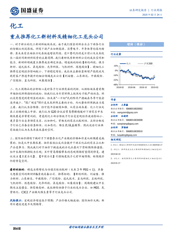 【国盛证券】【20190224】20190224-国盛证券-化工行业周报:重点推荐化工新材料及精细化工龙头公司-5页