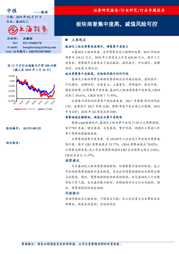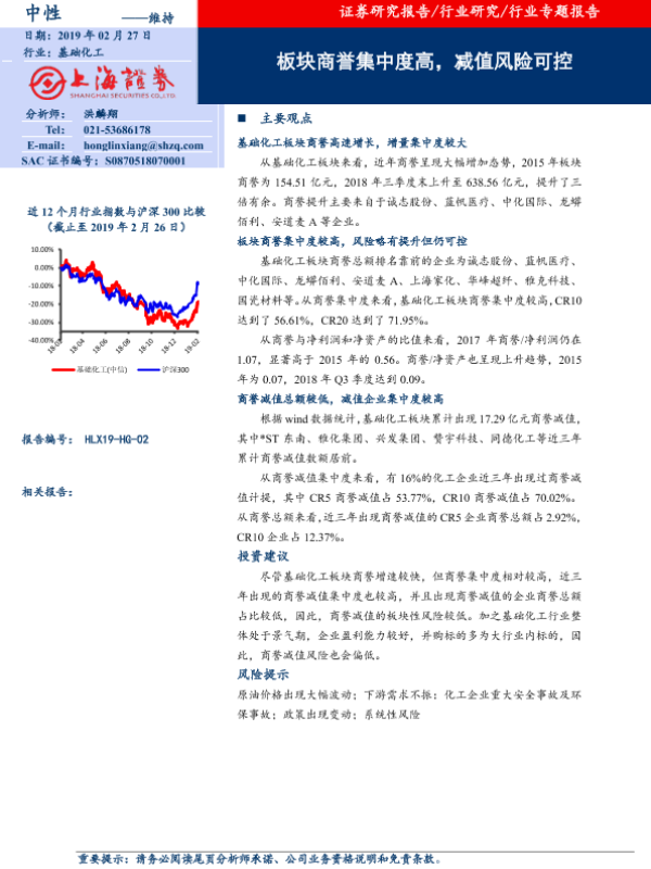【上海证券】【20190227】基础化工:板块商誉集中度高,减值风险可控-9页