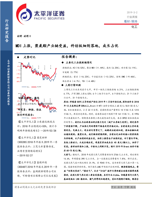 【太平洋证券】【20190302】20190302-太平洋-化工行业周报:MDI上涨,聚氨酯产业链受益,科创板细则落地,成长占优-41页