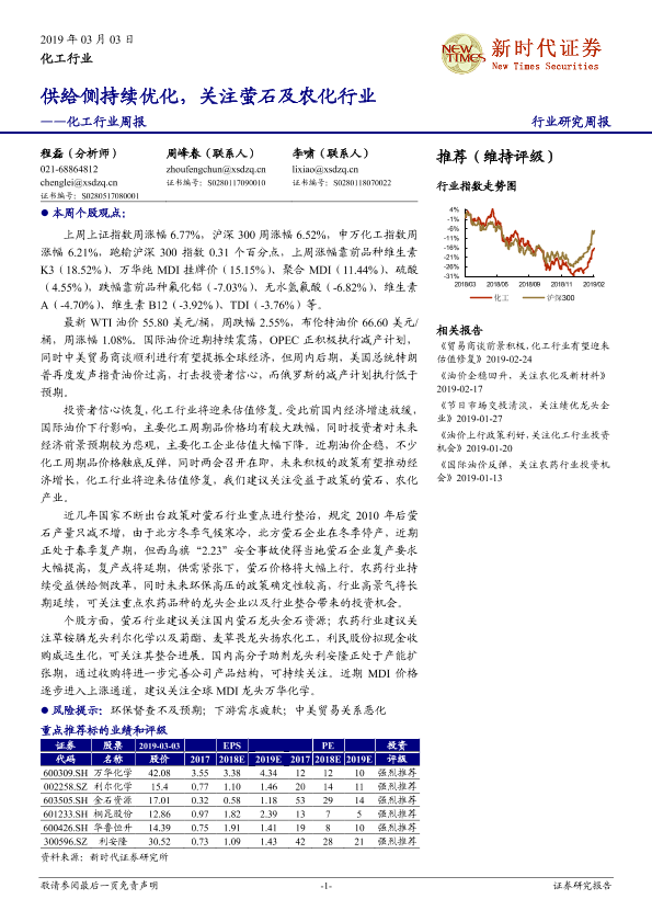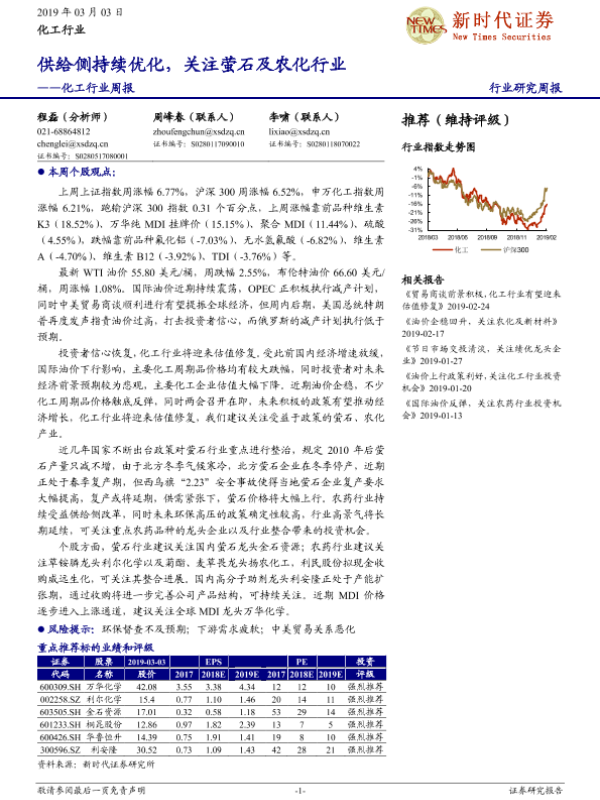 【新时代证券】【20190303】20190303-新时代证券-化工行业周报:供给侧持续优化,关注萤石及农化行业-27页