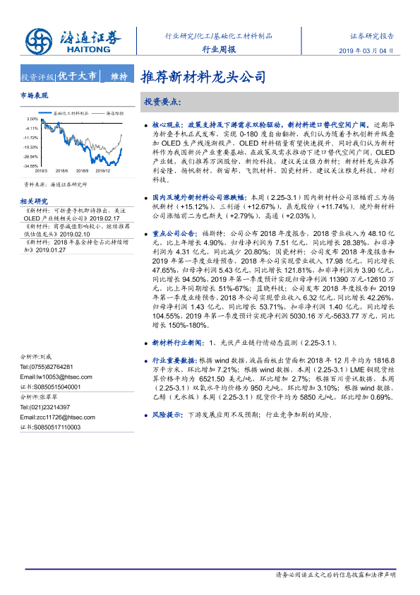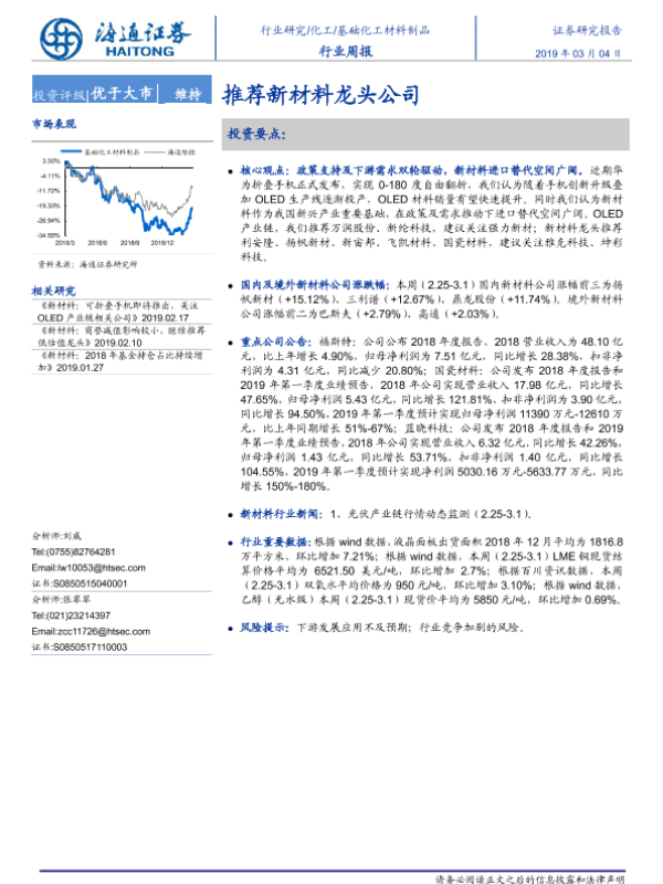 【海通证券】【20190304】基础化工材料制品行业周报:推荐新材料龙头公司-10页