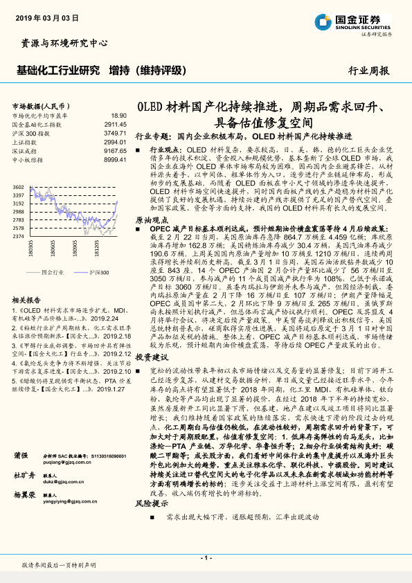 【国金证券】【20190303】基础化工行业周报:OLED材料国产化持续推进,周期品需求回升、具备估值修复空间-37页