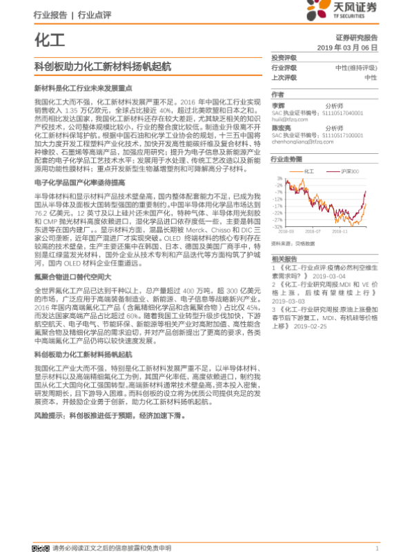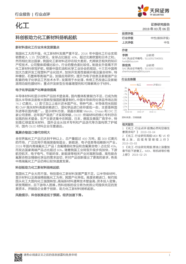 【天风证券】【20190306】20190306-天风证券-化工行业点评:科创板助力化工新材料扬帆起航-10页