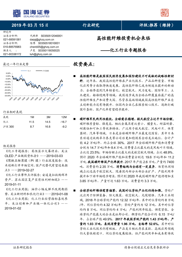 【国海证券】【20190315】20190315-国海证券-化工行业专题报告:高性能纤维投资机会来临-35页