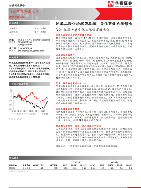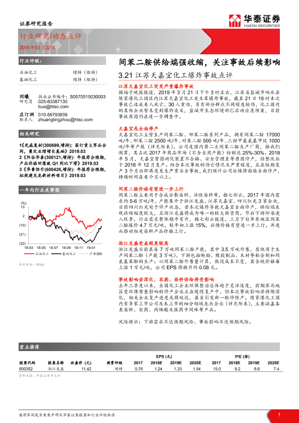 【华泰证券】【20190322】3.21江苏天嘉宜化工爆炸事故点评:间苯二胺供给端强收缩,关注事故后续影响-3页