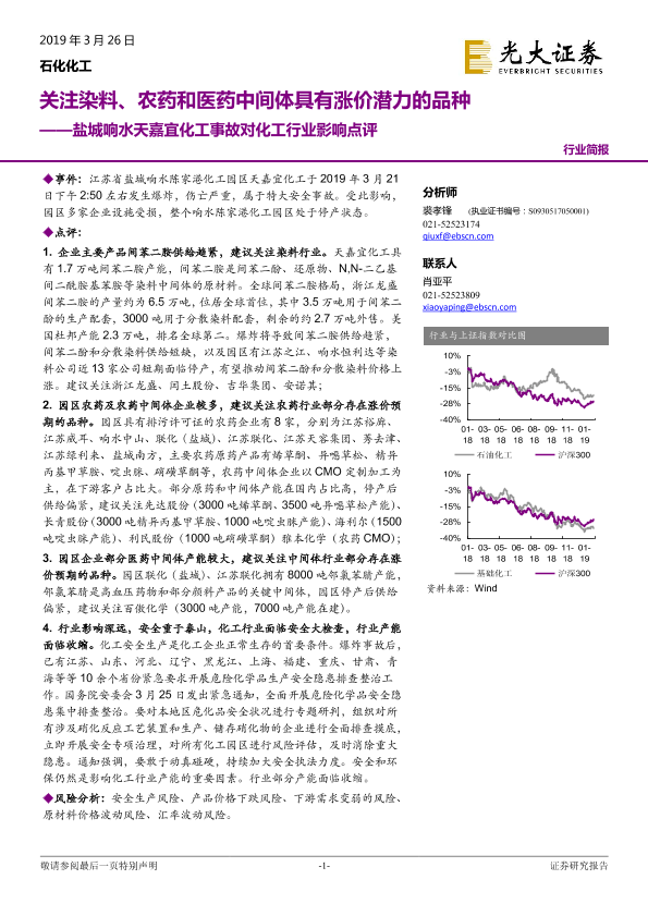 【光大证券】【20190326】盐城响水天嘉宜化工事故对化工行业影响点评:关注染料、农药和医药中间体具有涨价潜力的品种-2页