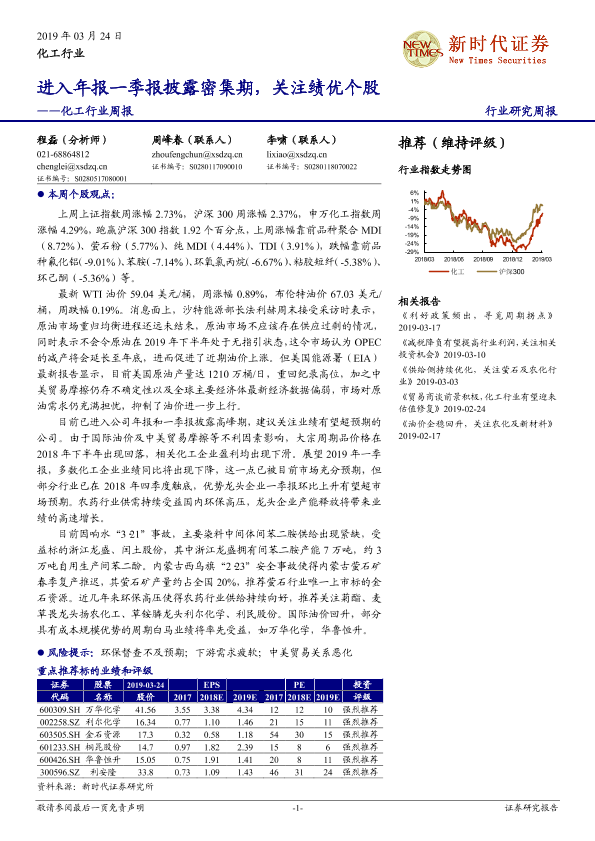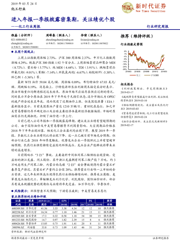 【新时代证券】【20190324】20190324-新时代证券-化工行业周报:进入年报一季报披露密集期,关注绩优个股-27页