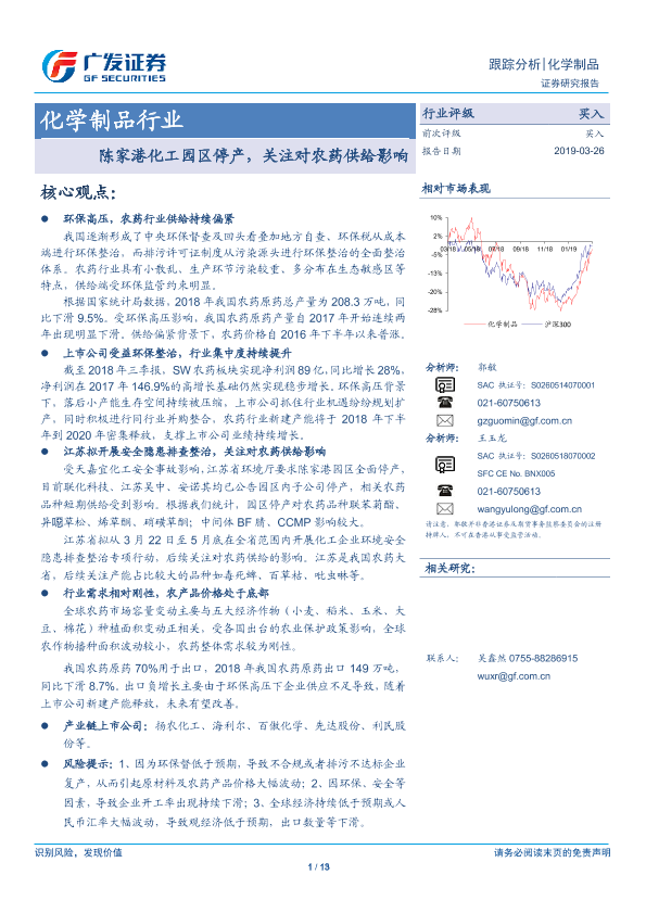 【广发证券】【20190326】化学制品行业跟踪分析:陈家港化工园区停产,关注对农药供给影响-13页