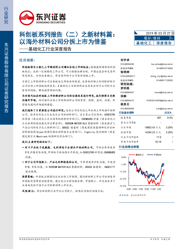 【东兴证券】【20190327】基础化工行业深度报告:科创板系列报告(二)之新材料篇:以海外材料公司分拆上市为借鉴-20页